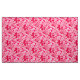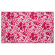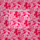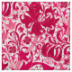 Fabric in a vintage William Morris floral print of stylised lilies and Irises, digitally enhanced and coloured, in shades of light to deep fuchsia pink and deep wine red on a white background