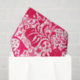 Tissue paper in a vintage William Morris floral print of stylised lilies and Irises, digitally enhanced and coloured, in shades of light to deep fuchsia pink and deep wine red on a white background