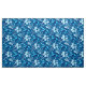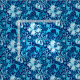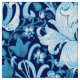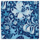 Fabric in a vintage William Morris floral print of stylised lilies and Irises, digitally enhanced and coloured, in shades of sky blue and white on a dark indigo blue background