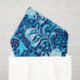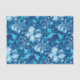 Tissue paper in a vintage William Morris floral print of stylised lilies and Irises, digitally enhanced and coloured, in shades of sky blue and white on a dark indigo blue background