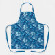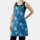 Apron in a vintage William Morris floral print of stylised lilies and Irises, digitally enhanced and coloured, in shades of sky blue and white on a dark indigo blue background, digitally coloured and enhanced