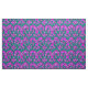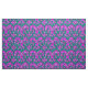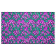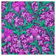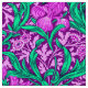 Fabric in a William Morris, Art Nouveau, textile print of irises and leaves, digitally enhanced and coloured, in soft orchid and turquoise, on a deep amethyst purple background