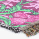 Throw in a William Morris, Art Nouveau, textile print of irises and leaves, digitally enhanced and coloured, in fuchsia and ice pink, peacock green, and white, on a deep wine background