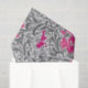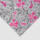 Tissue paper in a William Morris, Art Nouveau, textile print of irises and leaves, digitally enhanced and coloured, in fuchsia and light pink, with graphite and medium grey / grey leaves, on a light silver grey background