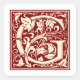 William Morris Letter G Monogram Initial Red Square Sticker