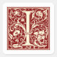 William Morris Letter I Monogram Initial Red Square Sticker