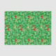 Tissue paper in a William Morris Art Nouveau textile pattern of lychee tree branches and leaves, in shades of lime and deep green, accented with red lychee fruits and yellow blossoms, on a light green background