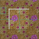 Fabric in a vintage William Morris, Art Nouveau, marigold damask print of leaves and flowers, digitally enhanced and coloured, in shades of light brown and beige, accented with violet purple and pink, on a dark chocolate brown background