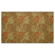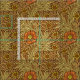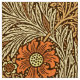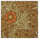 Fabric in a vintage William Morris, Art Nouveau, marigold damask print of leaves and flowers, digitally enhanced and coloured, in shades of copper brown and mustard gold, accented with orange and yellow, on a dark chocolate brown background