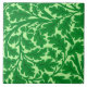 Ceramic tile in a William Morris Art Nouveau, textile pattern - oak leaves and branches in deep emerald green, accented with black, with a light lime green background