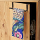 Hand towel in a William Morris Art Nouveau, tapestry pattern, featuring a tan and beige owl against fantasy flowers and leaves, with a deep cobalt blue background
