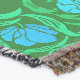 Throw blanket in a vintage William Morris textile pattern of stylised pimpernel flowers and leaves - flowers in a gradient of deep to light cerulean blue, with light emerald green leaves, on a deep emerald green background