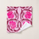 Towel set in a vintage William Morris textile pattern of stylised pimpernel flowers and leaves - flowers in a gradient of light to dark fuchsia pink, accented with burgundy, on a pastel pink background