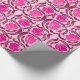 Wrapping paper in a vintage William Morris textile pattern of stylised pimpernel flowers and leaves - flowers in a gradient of light to dark fuchsia pink, accented with burgundy, on a pastel pink background