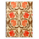 Notebook in a vintage William Morris textile pattern of stylised pimpernel flowers and leaves - flowers in a gradient of medium to deep Mandarin orange, accented with chocolate brown, on a pastel creamsicle orange background