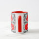 Mug in a vintage William Morris textile pattern of stylised pimpernel flowers and leaves - flowers in a gradient of dark to bright red, with graphite grey / grey leaves, on a light silver grey background