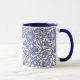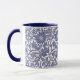 The design is a blue version of the William Morris “Pink and Rose” wallpaper pattern ca. 1890. William Morris (1834-1896) was a famous arts and crafts designer.