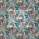 This is a colourful red, orange, blue, green, teal and cream ornate floral pattern of stylised tulips, peonies, crocuses and acanthus leaves in the Art Nouveau style, based on the floral pattern by William Morris (1834-1896).