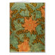 Beautiful ornate artistic vintage fine art design featuring orange single-stem flowers and green leaves against a floral background pattern.