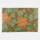 Beautiful ornate artistic vintage fine art design featuring orange single-stem flowers and green leaves against a floral background pattern.