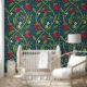 William Morris Style Jade & Red Strawberry Pattern Wallpaper