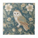 William Morris style Left Teal Cream Barn Owl Ceramic Tile