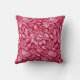 Throw pillow in a vintage William Morris, Art Nouveau, floral print of stylised sunflowers, digitally enhanced and coloured, in deep burgundy / maroon and pastel pink