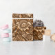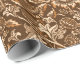 Wrapping paper in a vintage William Morris, Art Nouveau, floral print of stylized sunflowers, digitally enhanced and colored, in dark chocolate brown and beige, accented with camel tan