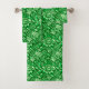 Towel set in a vintage William Morris, Art Nouveau, floral print of stylised sunflowers, digitally enhanced and coloured, in deep emerald green and light green
