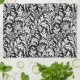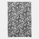 Kitchen towel in a vintage William Morris damask pattern of thistle flowers and leaves, in white, on a black background, digitally enhanced and coloured