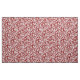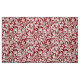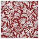 Fabric in a vintage William Morris damask pattern of thistle flowers and leaves, in white, on a dark Chinese red background, digitally enhanced and coloured