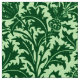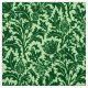 Fabric in a vintage William Morris damask pattern of thistle flowers and leaves, in deep emerald green, on a light mint green background, digitally enhanced and coloured