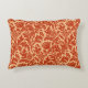 Accent pillow in a vintage William Morris damask pattern of thistle flowers and leaves, in deep mandarin orange, on a pastel orange background, digitally enhanced and coloured