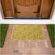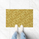 Doormat in a vintage William Morris damask pattern of thistle flowers and leaves, in deep mustard gold, on a light chamois yellow background, digitally enhanced and coloured