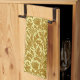 Kitchen towel in a vintage William Morris damask pattern of thistle flowers and leaves, in deep mustard gold, on a light chamois yellow background, digitally enhanced and coloured