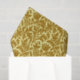 Tissue paper in a vintage William Morris damask pattern of thistle flowers and leaves, in deep mustard gold, on a light chamois yellow background, digitally enhanced and coloured