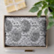 Tissue paper in a William Morris Art Nouveau take on a traditional "tree of life" pattern, featuring fantasy trees surrounded by branches filled with exotic flowers and birds, black and shades of grey / grey, on a white background