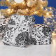 Wrapping paper in a William Morris Art Nouveau take on a traditional "tree of life" pattern, featuring fantasy trees surrounded by branches filled with exotic flowers and birds, black and shades of grey / grey, on a white background
