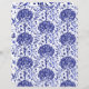 Paper in a William Morris Art Nouveau take on a traditional "tree of life" pattern, featuring fantasy trees surrounded by branches filled with exotic flowers and birds, in shades of cobalt blue and deep navy on a white background