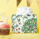 Wrapping paper in a William Morris Art Nouveau take on a traditional "tree of life" pattern, featuring fantasy trees surrounded by branches filled with exotic flowers and birds, shades of emerald green, tan, gold, red, and turquoise blue, on a white background