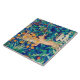 Ceramic tile in a William Morris illustration of two hares running through a wild forest setting - digitally enhanced and coloured
