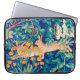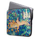 Laptop sleeve in a William Morris illustration of two hares running through a wild forest setting - digitally enhanced and coloured