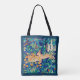 Printed tote bag in a William Morris illustration of two hares running through a wild forest setting - digitally enhanced and coloured