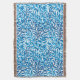 Throw blanket in a vintage William Morris pattern of stylised willow branches, in shades of cobalt and cerulean blue with dark indigo, on a white background