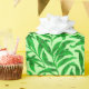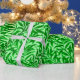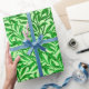Wrapping paper in a vintage William Morris pattern of stylised willow branches, in medium to dark emerald green, on a pale mint green background