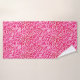 Towel set in a vintage William Morris pattern of stylised willow branches, in shades of deep fuchsia pink and burgundy, on a pastel pink background