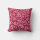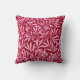 Throw pillow in a William Morris Art Nouveau textile pattern of stylised willow branches and leaves in shades of fuchsia pink, accented with white, on a deep burgundy / maroon background