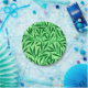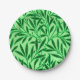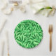 Paper plates in a William Morris Art Nouveau textile pattern of stylised willow branches and leaves in shades of deep jade green on a light jade green background