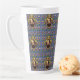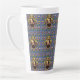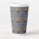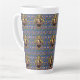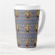 The Bard - The original design on this Latte Mug is a pattern made with a portrait of the author William Shakespeare. The portrait is in an ornate oval gold frame with ribbons and a crown on top. The blue background wallpaper is decorated with castles, kings' crowns and yellow and red flowers, bringing to mind the romance, tragedy and comedy of his plays and poetry.