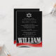 Steel Star of David and red and black wave design with the name "William". Contact this designer for a custom Name invitation in your favourite colour. Great for Bar Mitzvahs, Bat Mitzvahs, Graduations and Birthdays. Bold block name over a wave of colour.